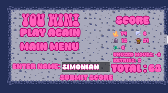 Try to escape the caves in one piece. Click the yellow tiles to navigate inside them. Every move costs you, so be careful! Eat everything you need to. Yes, everything is edible. (Not the walls though, they taste terrible).